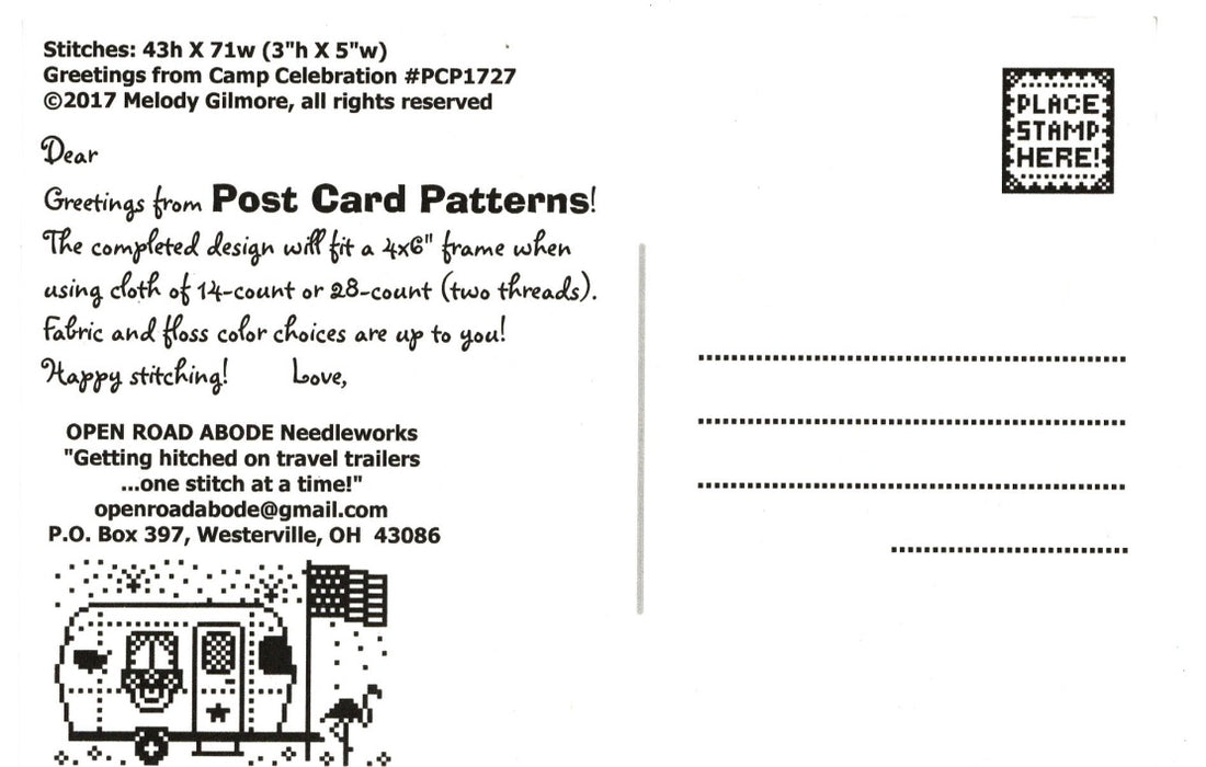 Greetings from Camp Celebration - Open Road Abode - Cross Stitch Pattern