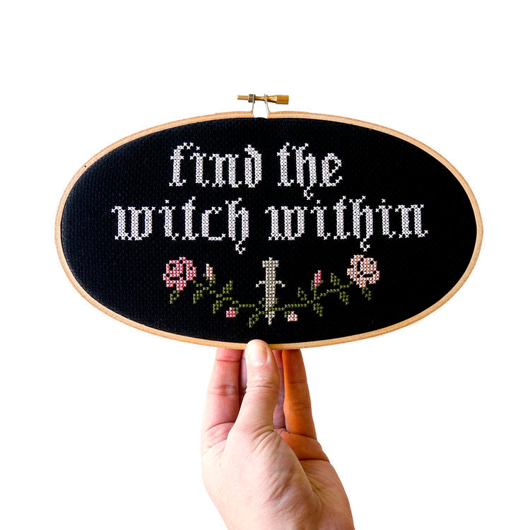 Beginner-friendly witch kit. "Find the witch within." Kit Includes:• 5"x9” wood embroidery hoop• Printed 1...