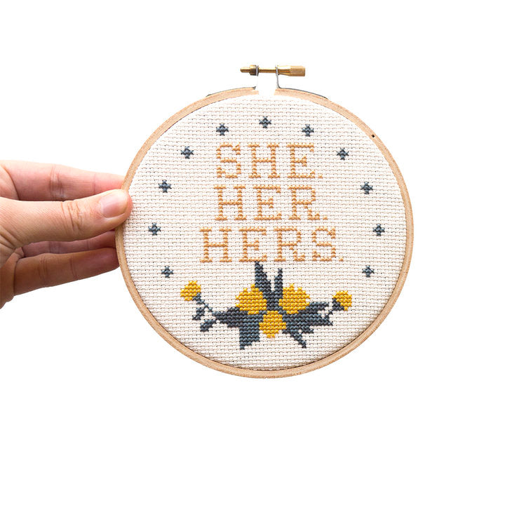 Beginner-friendly kit with "She/Her/Hers" pronouns. Kit Includes:• 5" wood embroidery hoop• Printed 1 page counted...