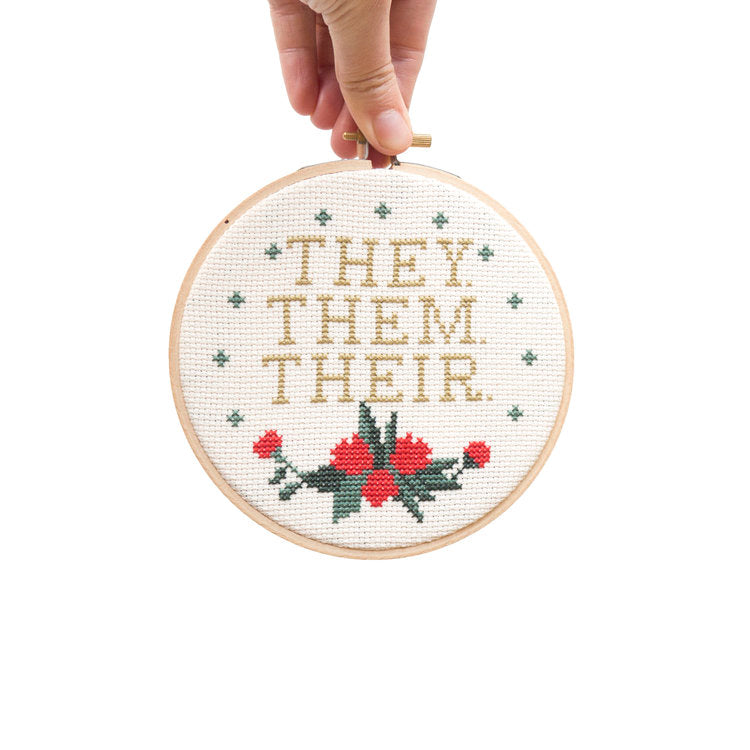 Beginner-friendly pronoun kit with "They/Them/Theirs." Kit Includes:• 5" wood embroidery hoop• Printed 1 page counted...