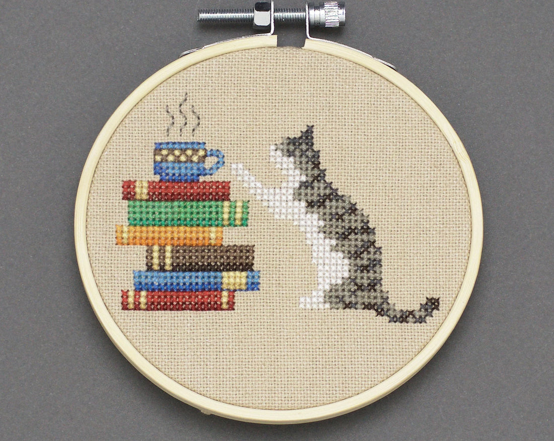 Cats, Books, and Coffee - Lola Crow Cross Stitch - Cross Stitch Pattern