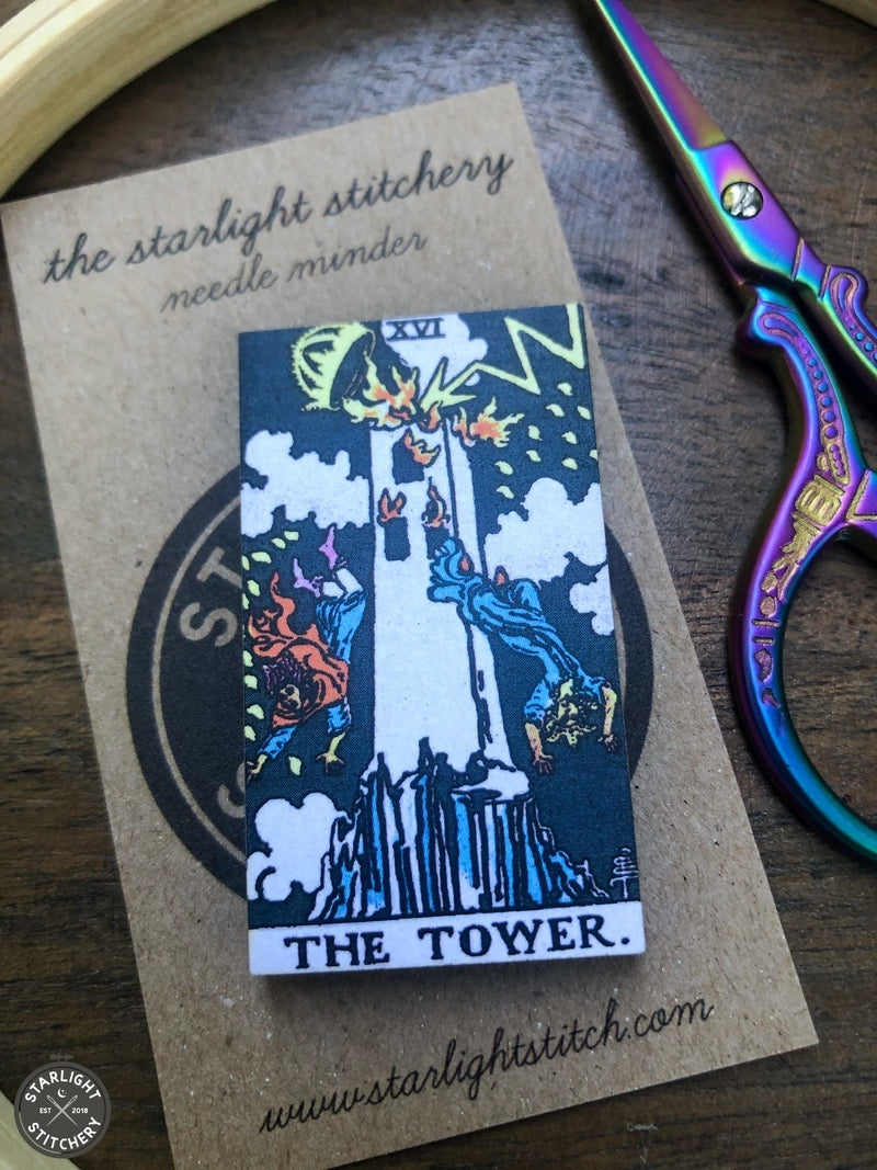 The Tower tarot card, from the classic Rider Waite deck. Our needle minders are made of...
