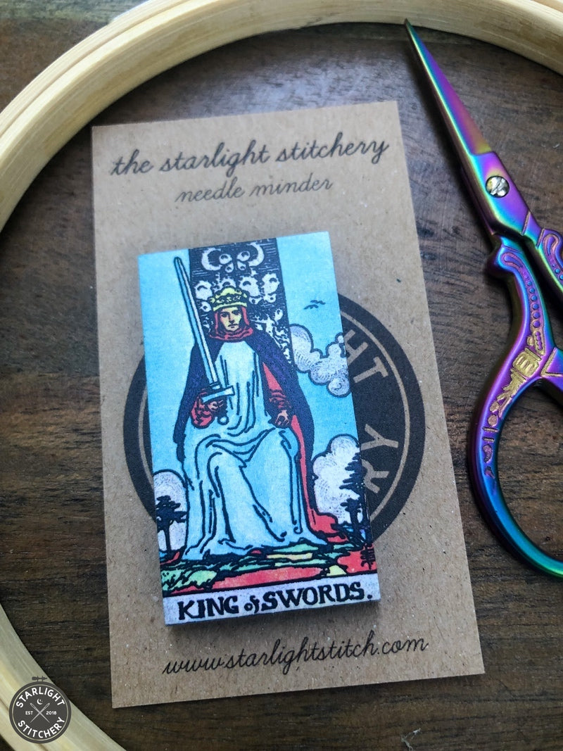 King of Swords tarot card, from the classic Rider Waite deck. Our needle minders are made...
