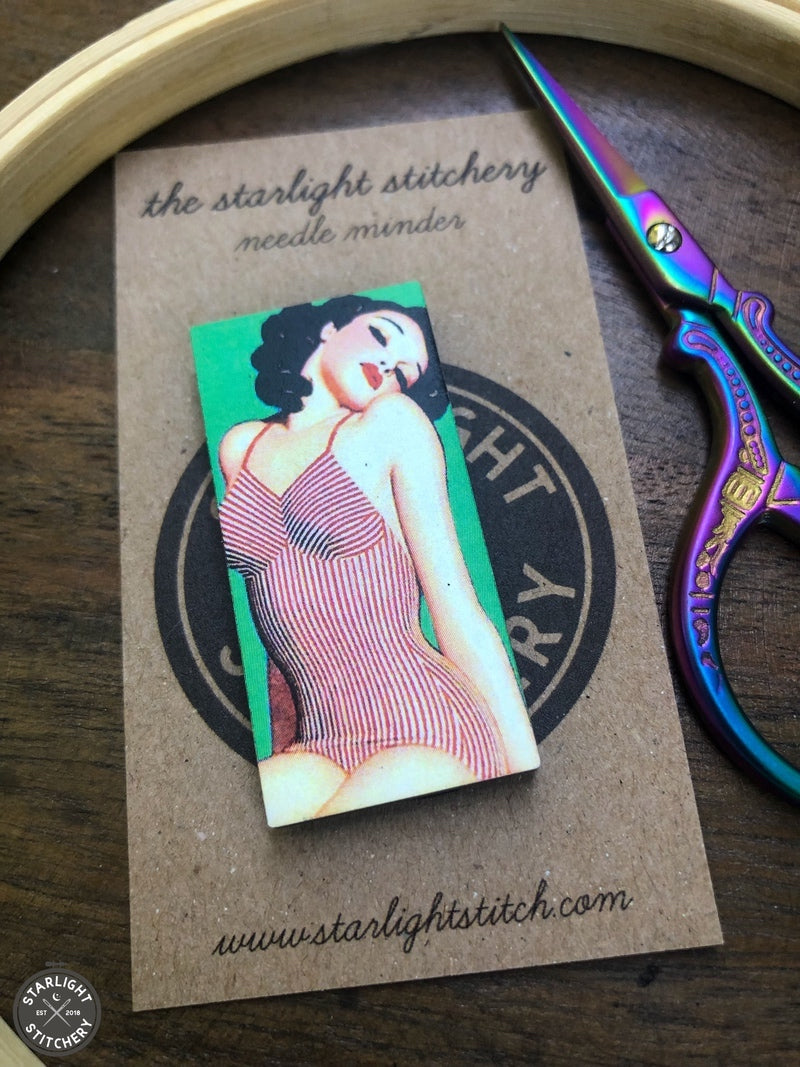 Vintage Pinup Girl Wooden Needle Minders