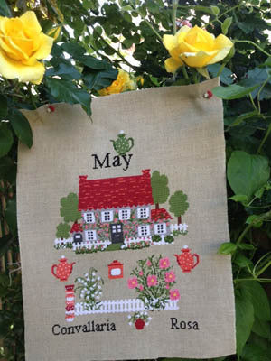 This listing is for a physical, printed pattern.May design features a flower-covered house, garden, tea...