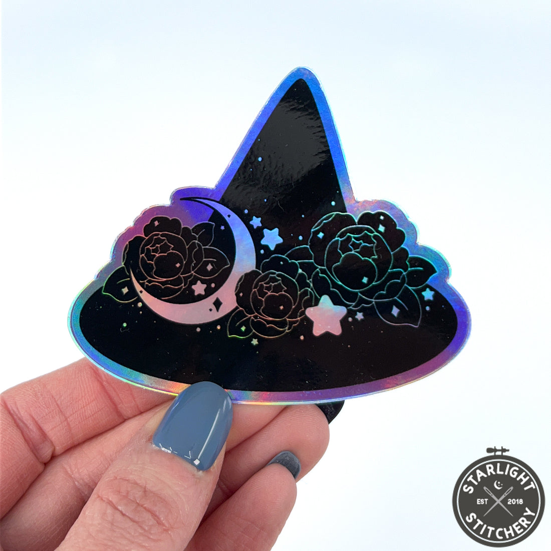 Floral Witch Hat Holo Sticker - Susan's Sweet Squees