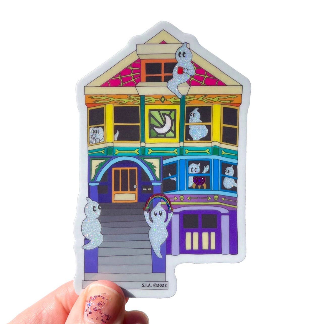 Sparkle Rainbow Haunted House Sticker - Surprise Inside Art