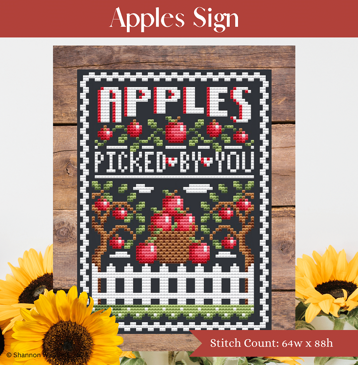 Apples Sign - Shannon Christine Designs - Cross Stitch Pattern
