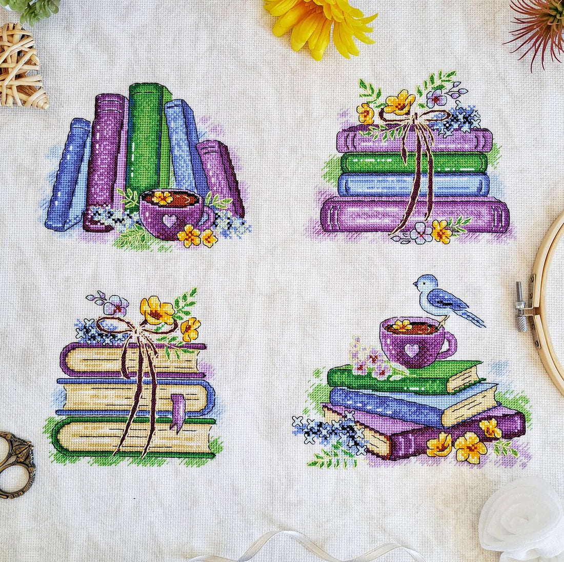 Books, Flowers, & Tea Sampler - Artmishka Cross Stitch - Cross Stitch Patterns