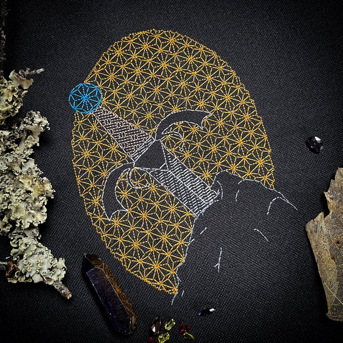 This listing is for a printed paper pattern. Blackwork design stitched on black fabric with...
