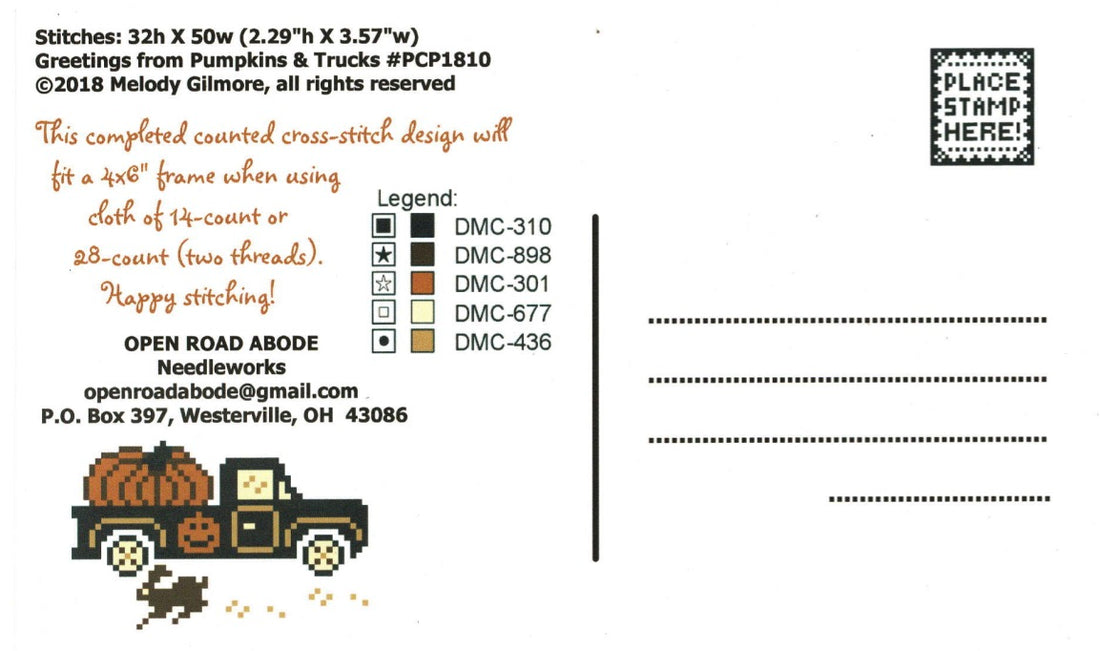 Greetings from Pumpkins & Trucks - Open Road Abode - Cross Stitch Pattern