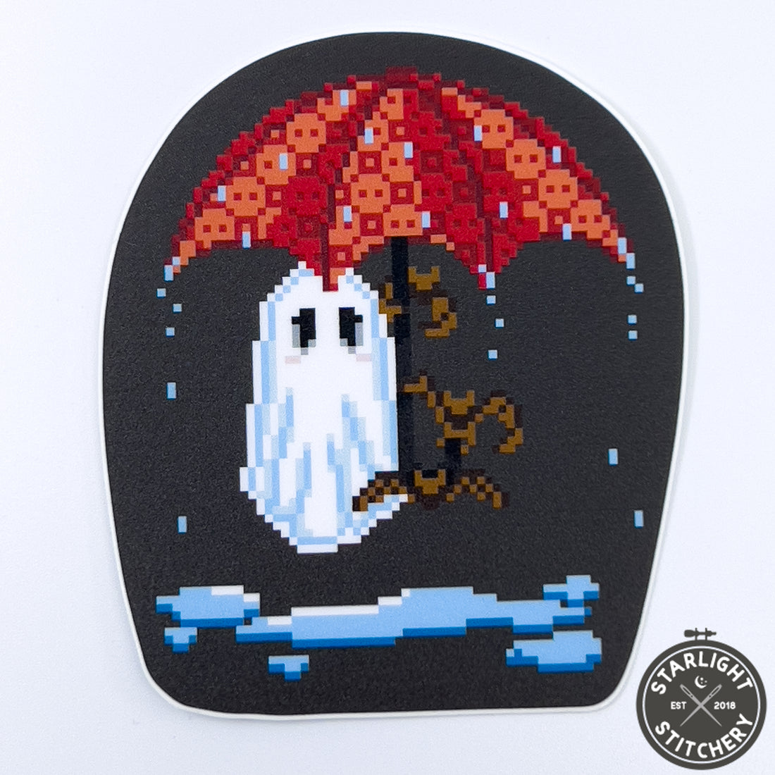 Rainy Ghost Cross Stitch Sticker - The Stitch Crypt
