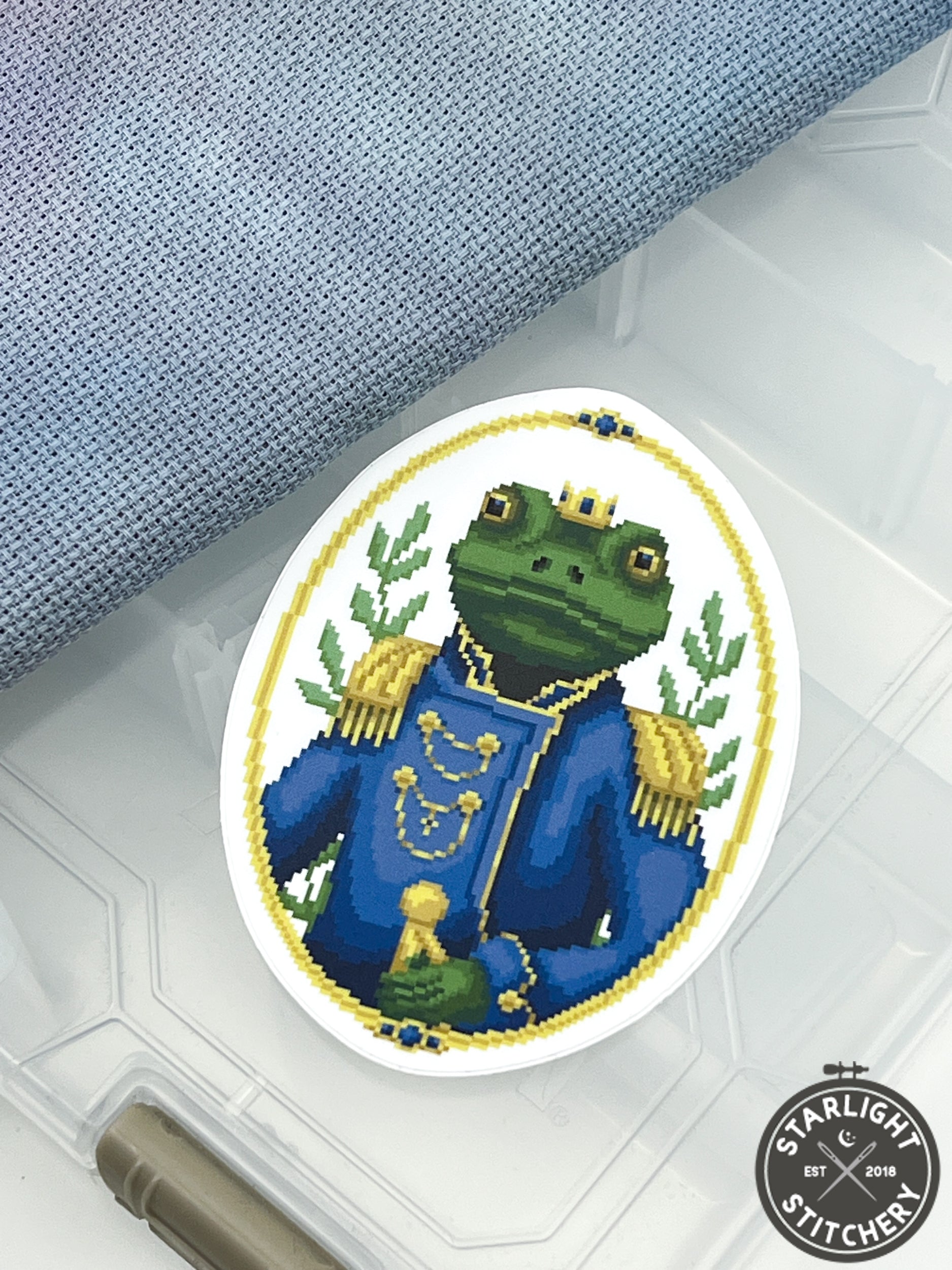 Prince Pondworthy Cross Stitch Sticker - Fine Frog Stitching