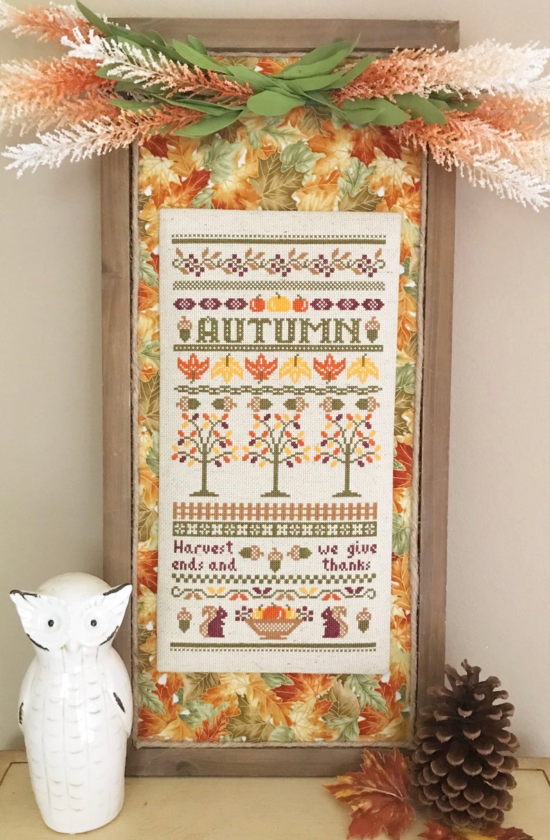 Autumn Sampler Banner - Sapphire Mountain Handcrafts - Cross Stitch Pattern