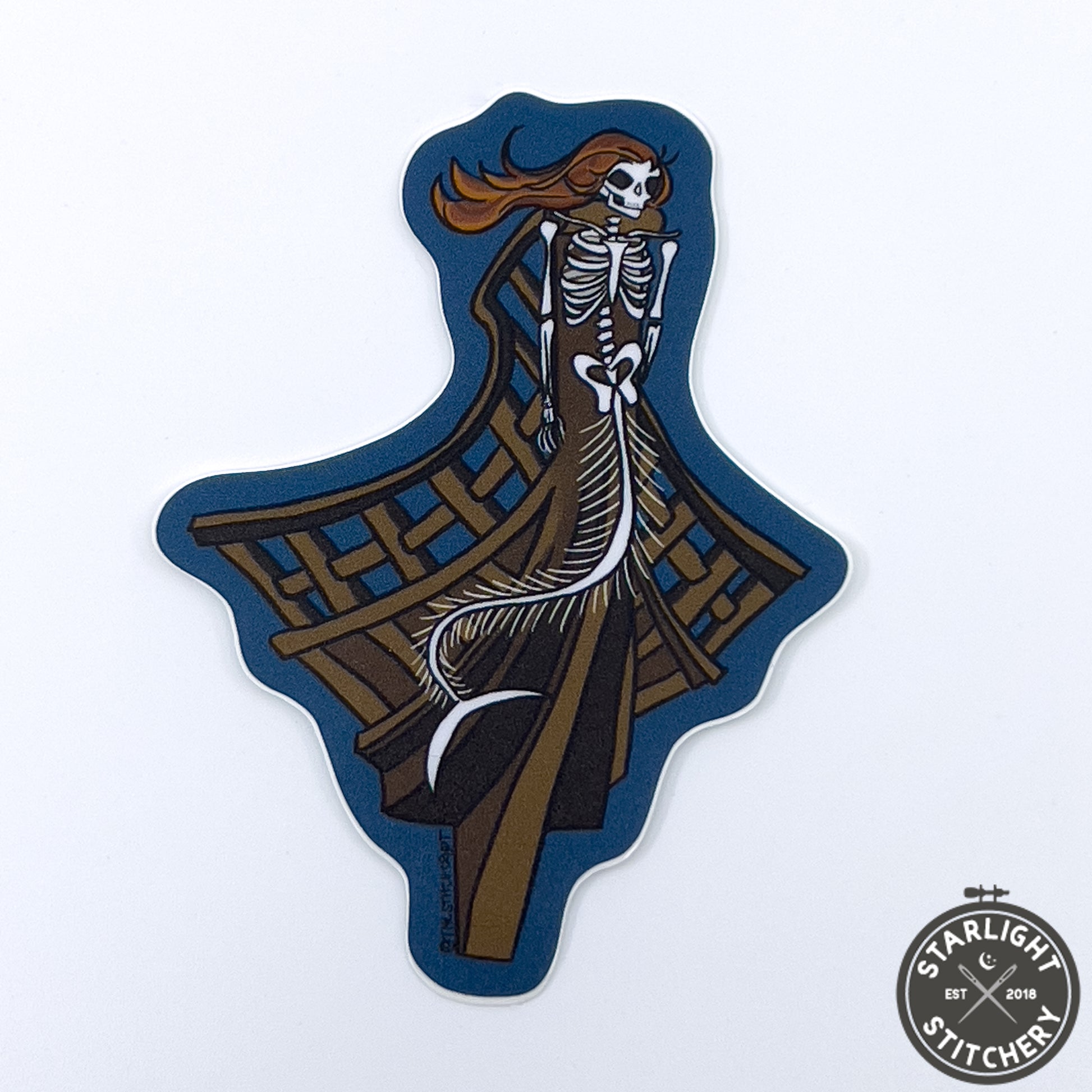 Skeleton Mermaid Cross Stitch Sticker - The Stitch Crypt