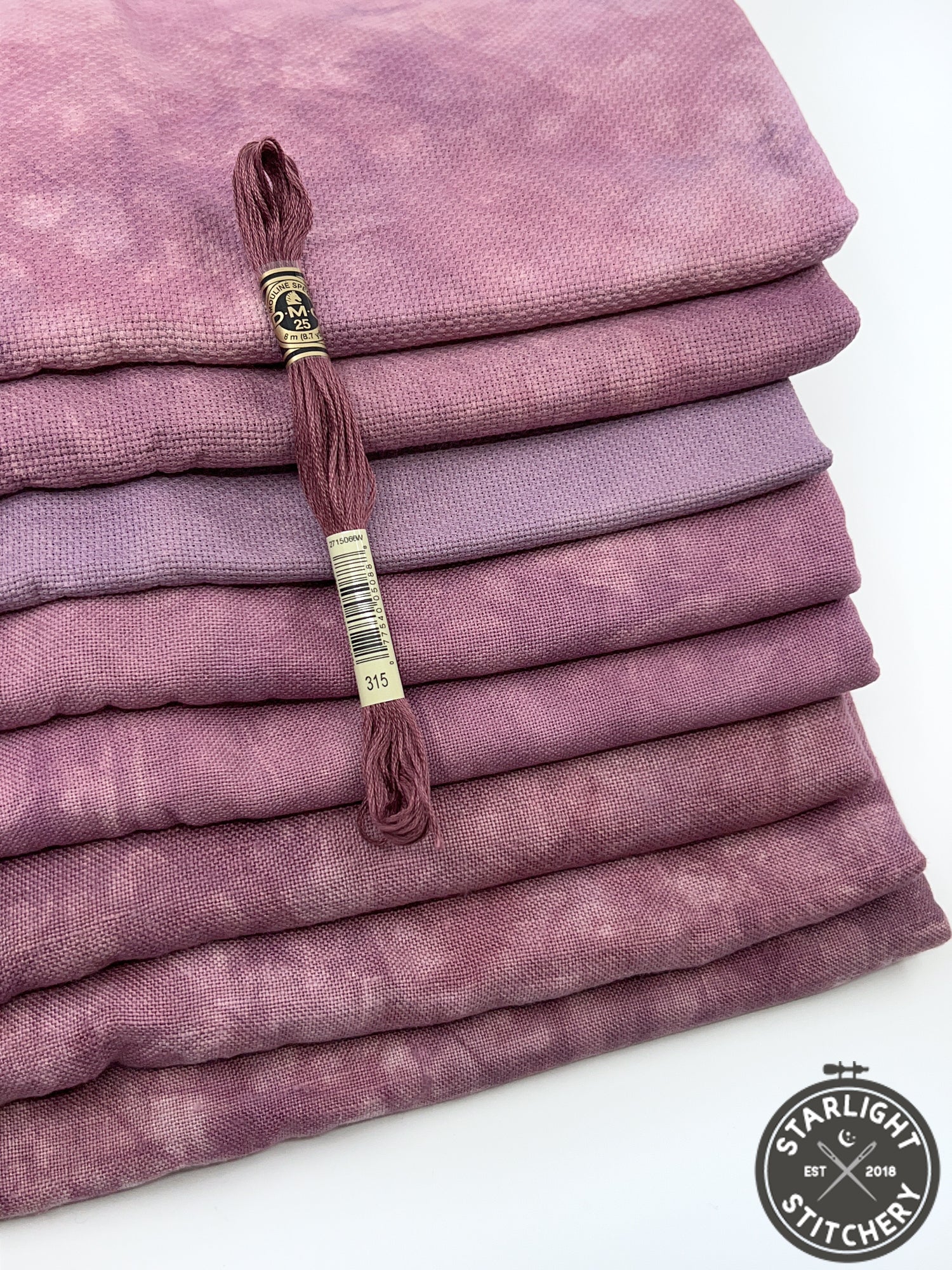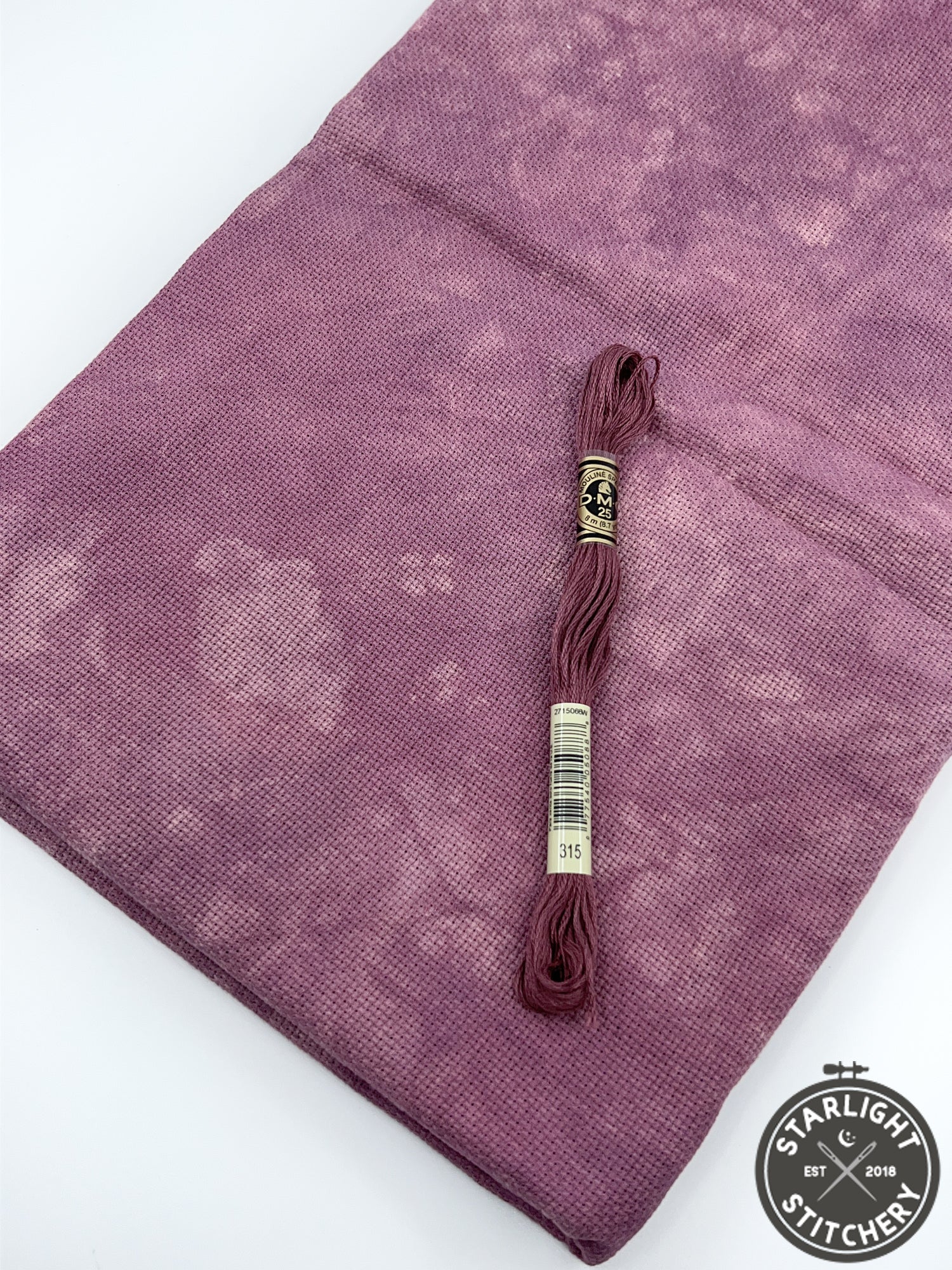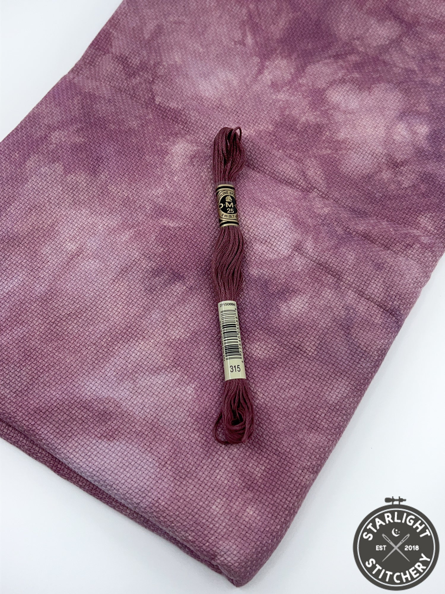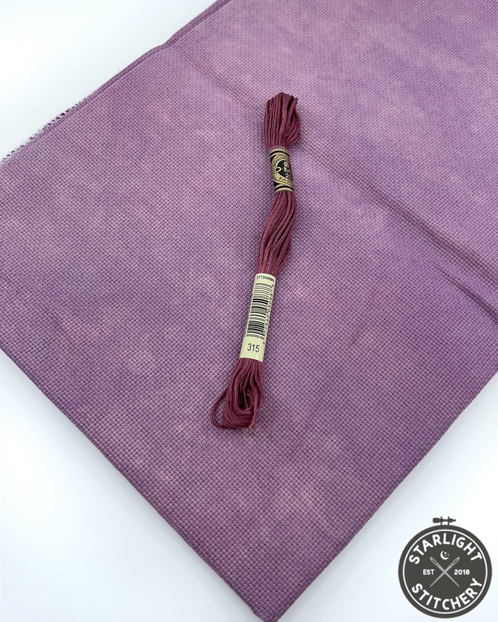 Tea Rose is a lovely deep mauve, similar to DMC 315. Please note that the 18 ct Aida is a more muted shade from the other fabric types.
