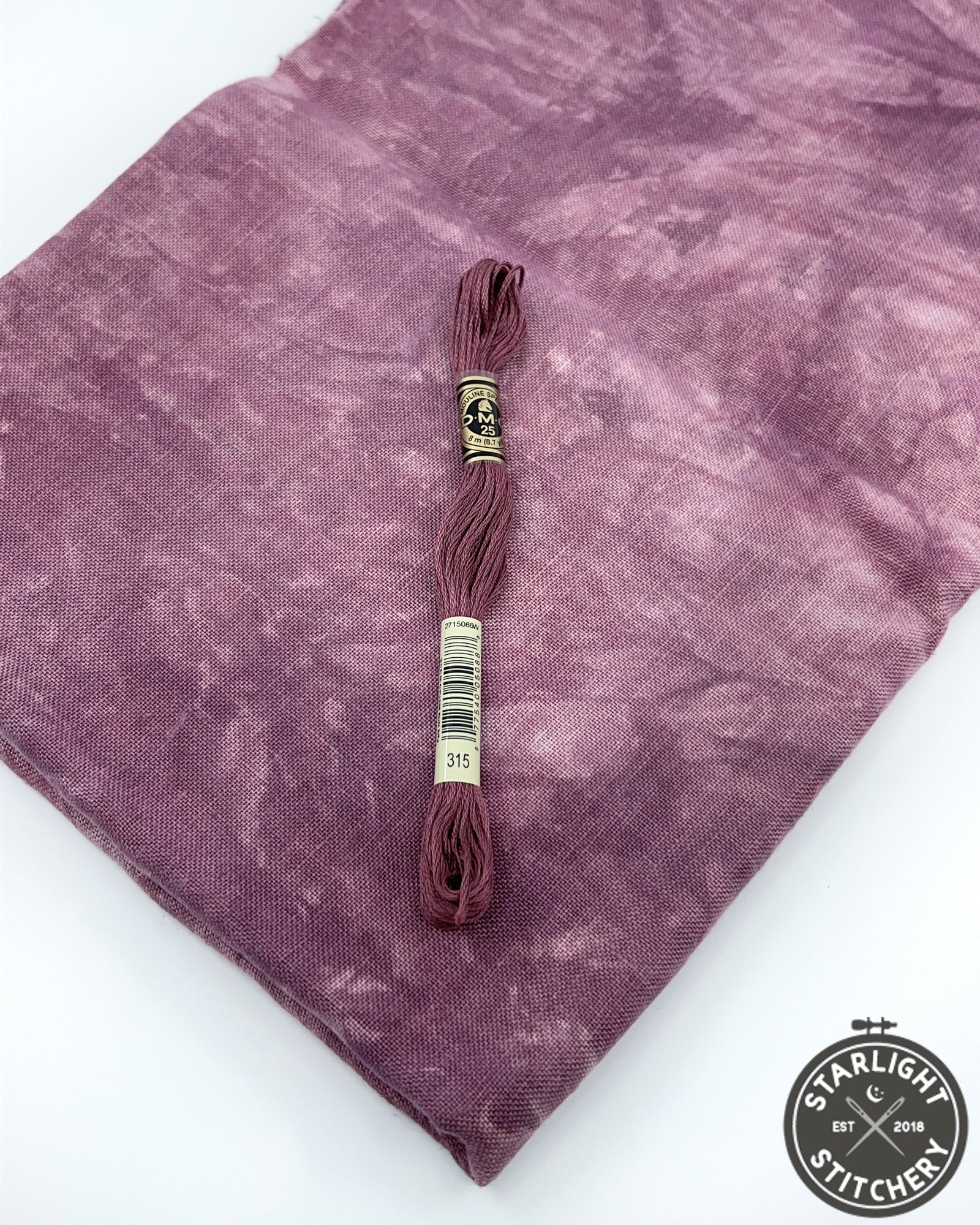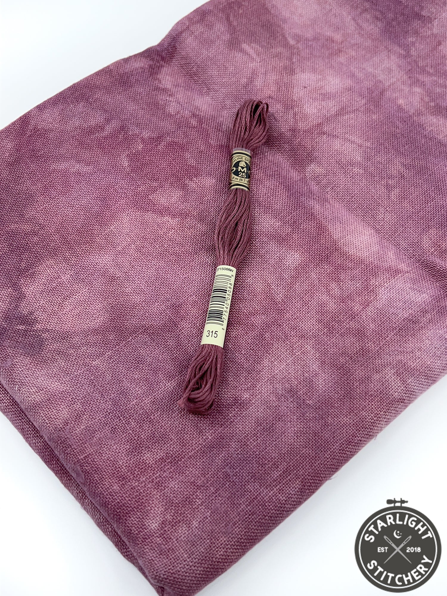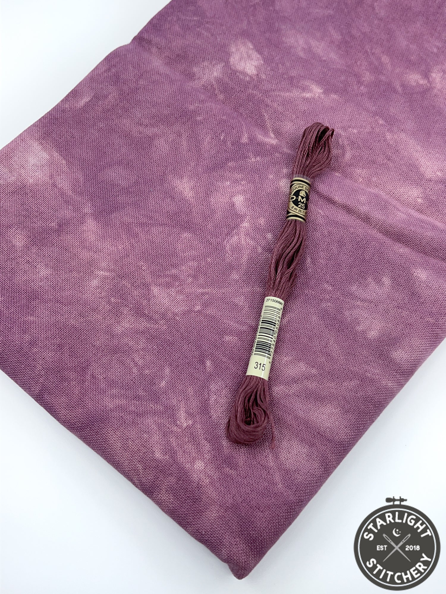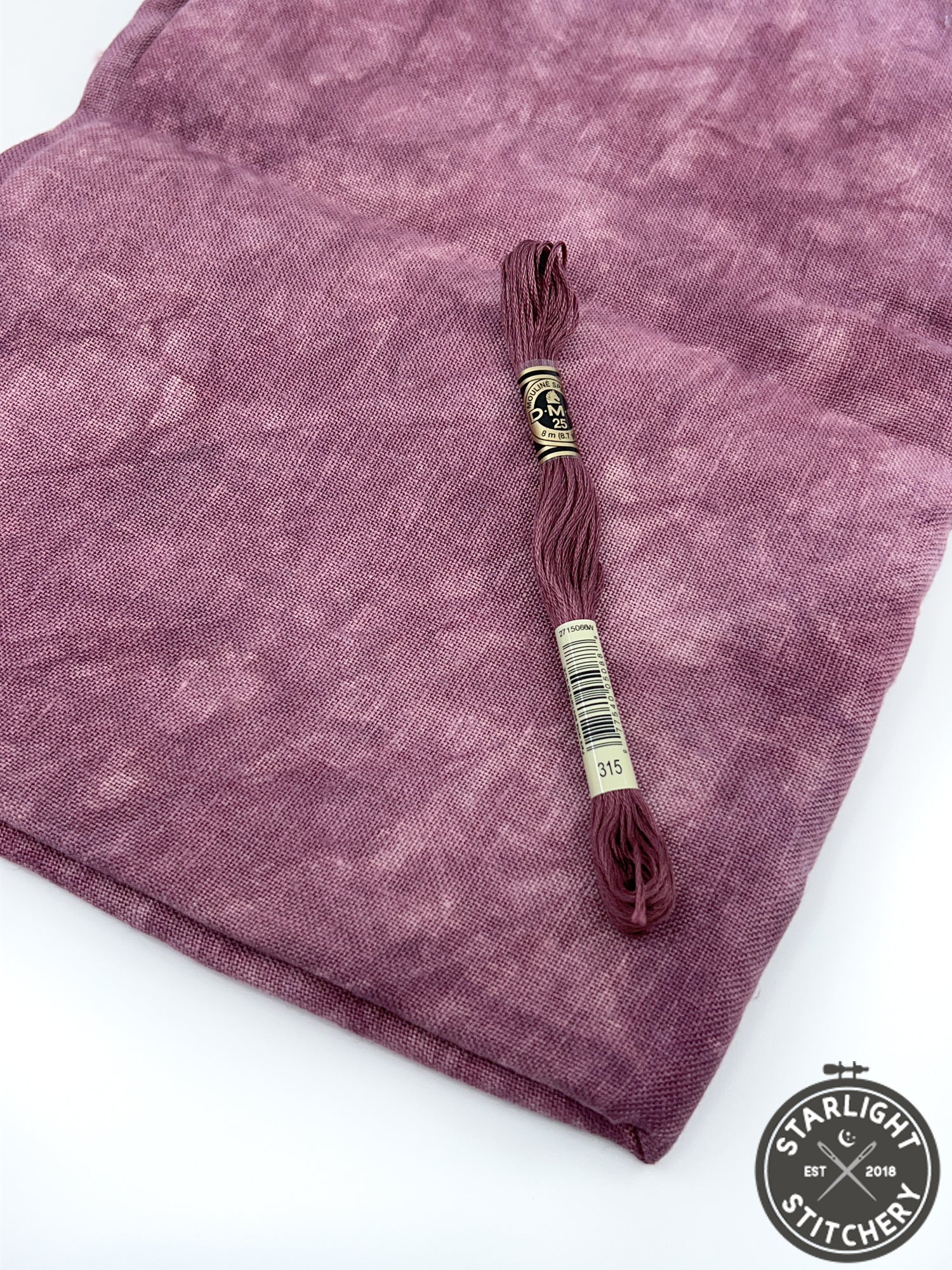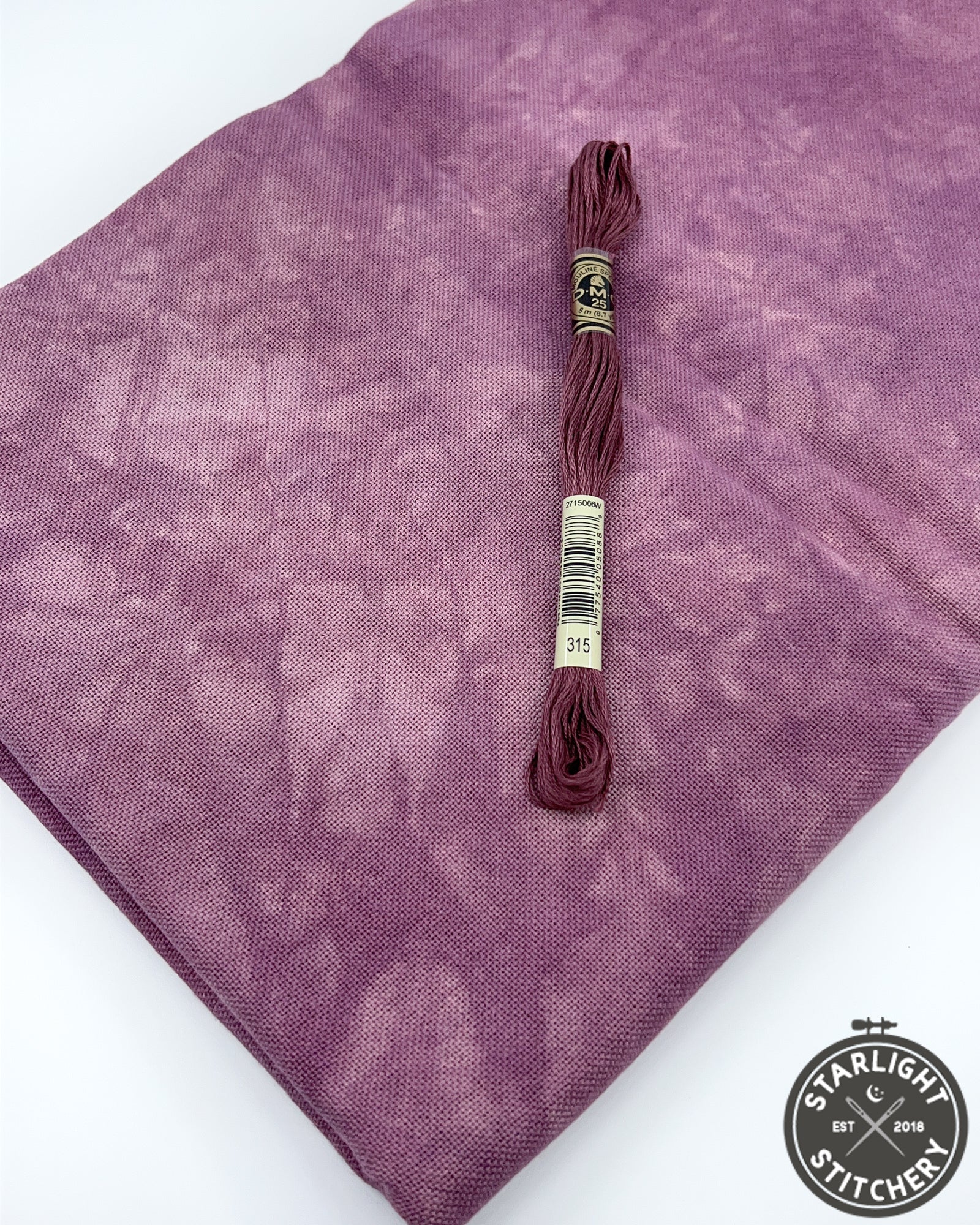 Tea Rose is a lovely deep mauve, similar to DMC 315. Please note that the 18 ct Aida is a more muted shade from the other fabric types.